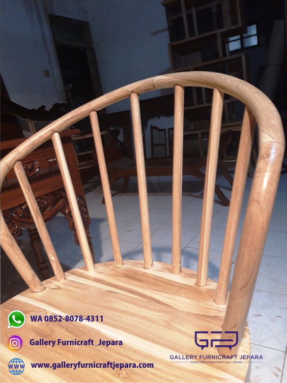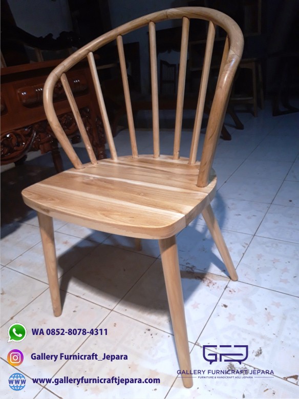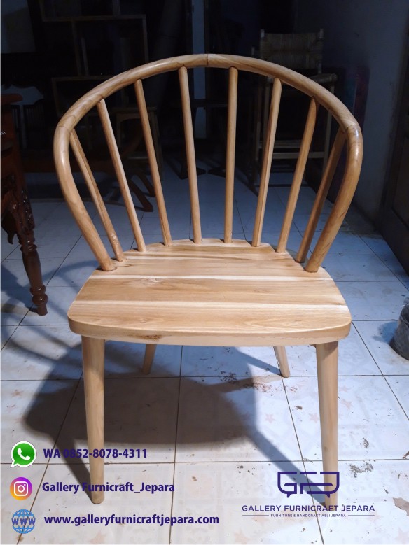 Kursi Cafe berbahan kayu Jati dengan desain jari jari dan finishing Natural Bleaching