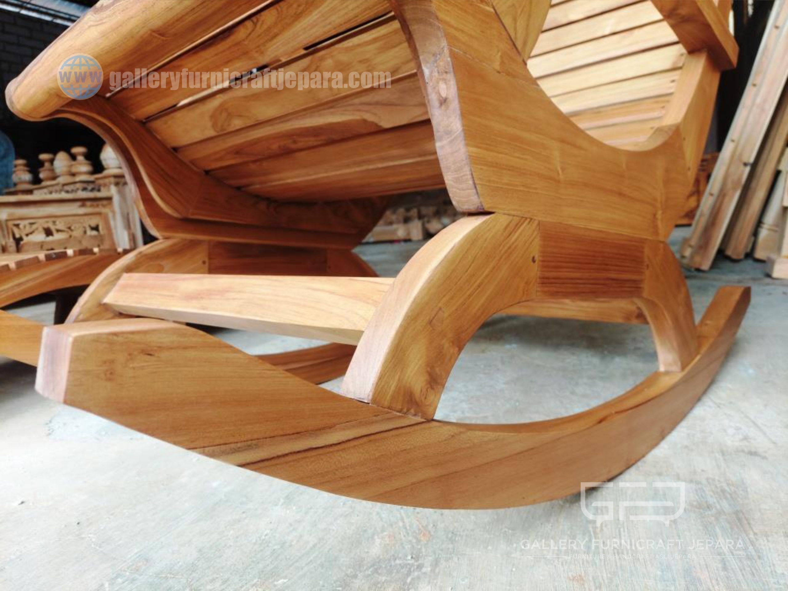 Kursi Goyang, dirancang untuk kuat di outdoor, dengan material kayu jati grade A dan finishing Teak Oil (ultran by propan)