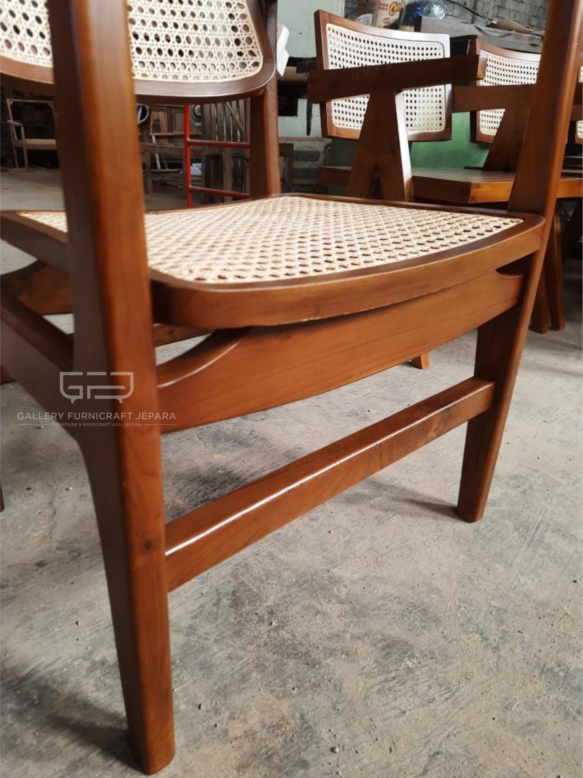 cocok digunakan untuk kursi teras, kursi cafe, kursi makan dengan bahan baku kayu jati kualitas A, finishing Natural yang menampakkan serat kayu jati asli terkesan lebih natural dan mewah
