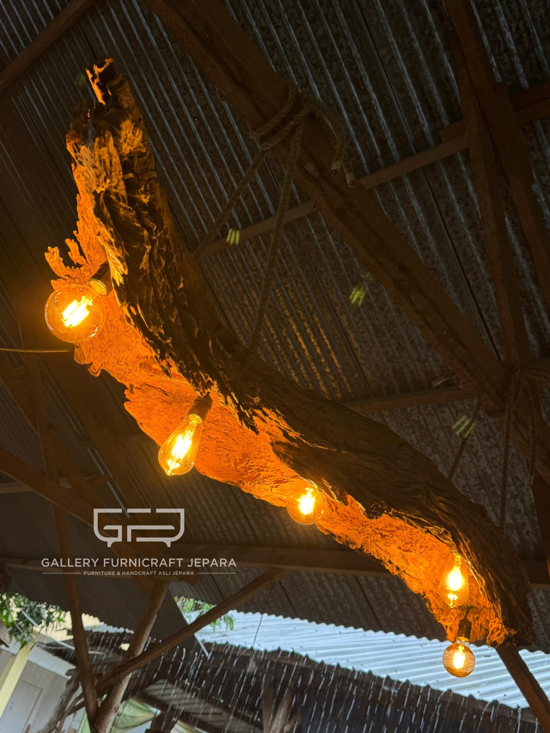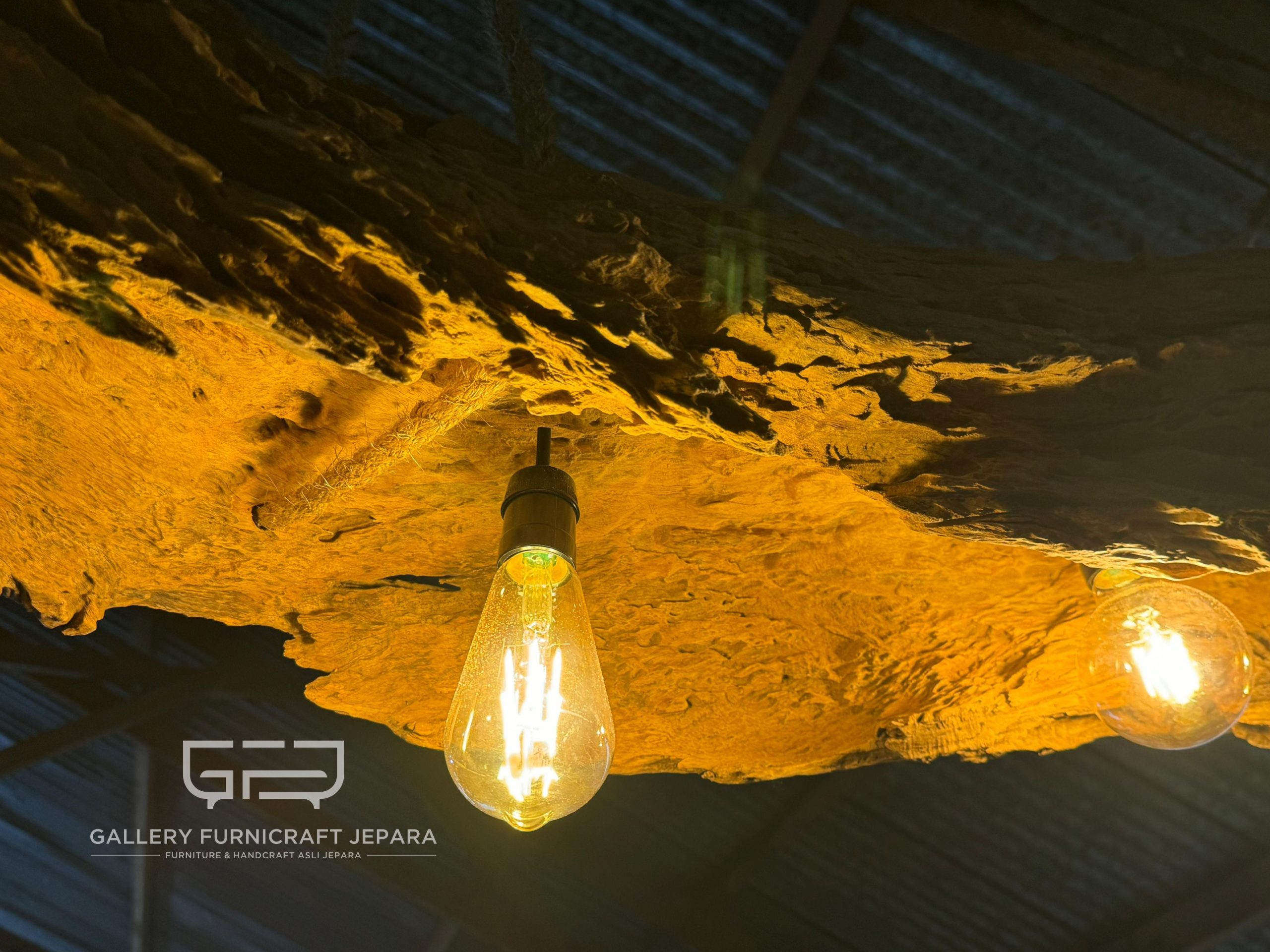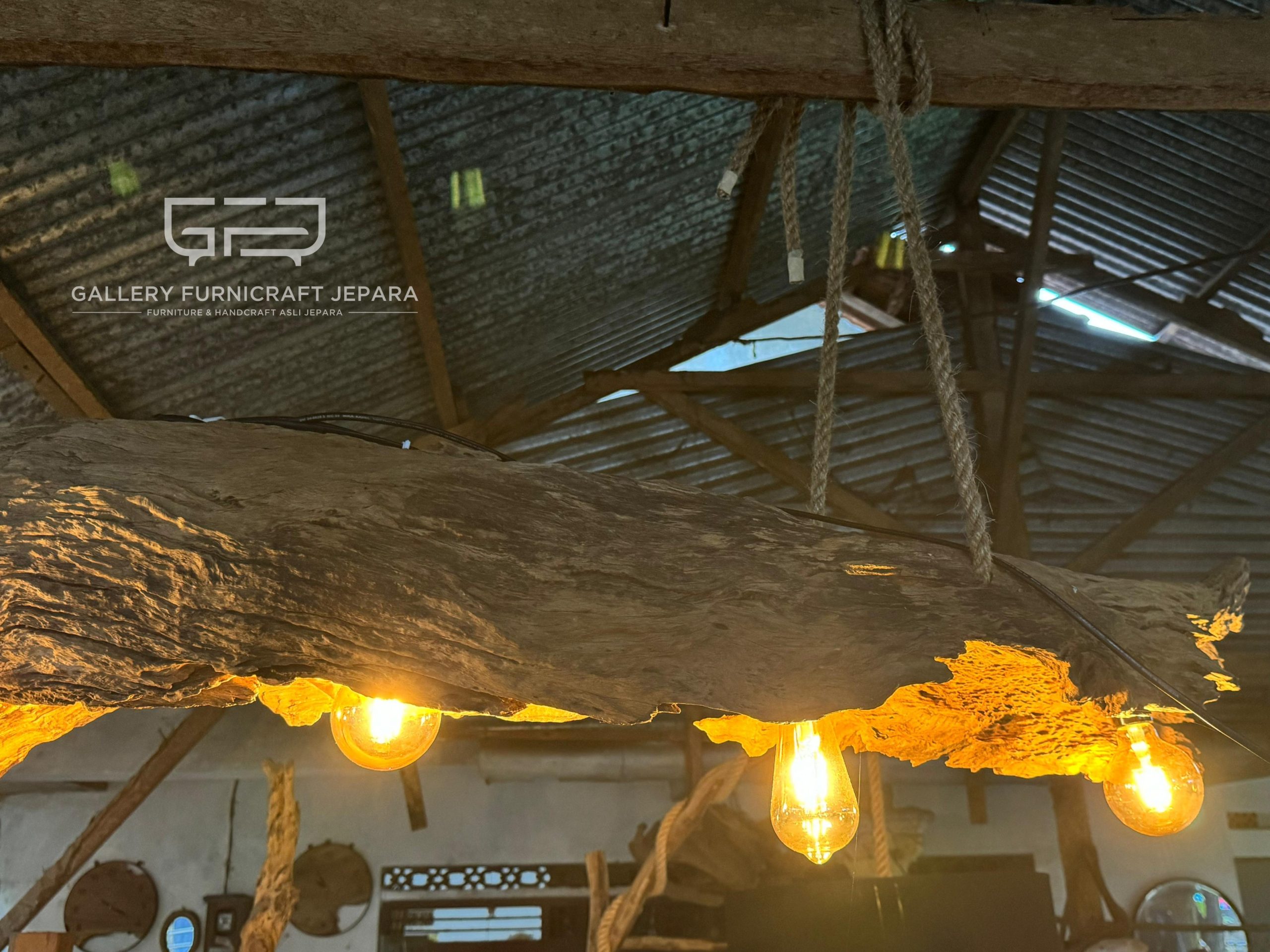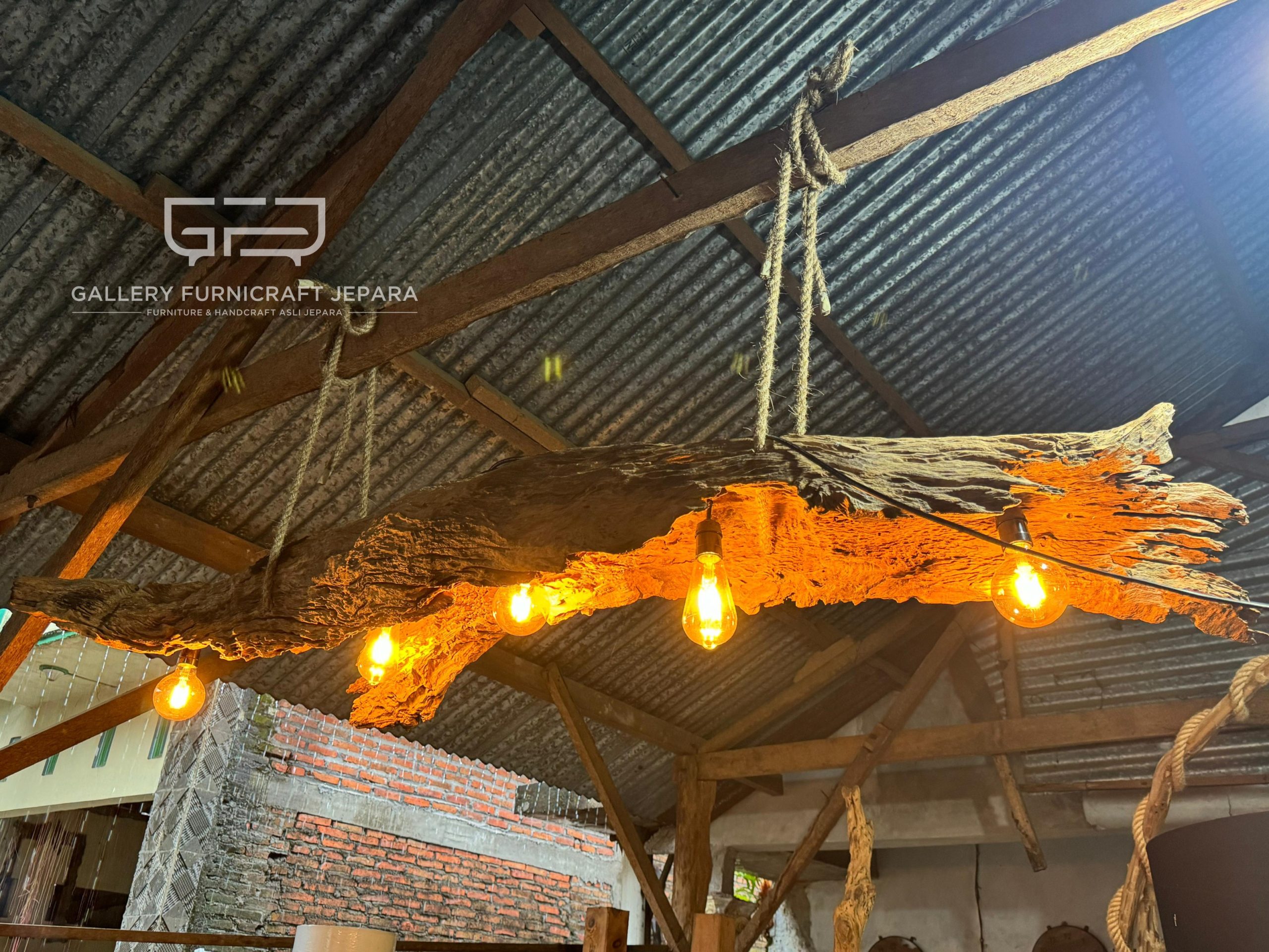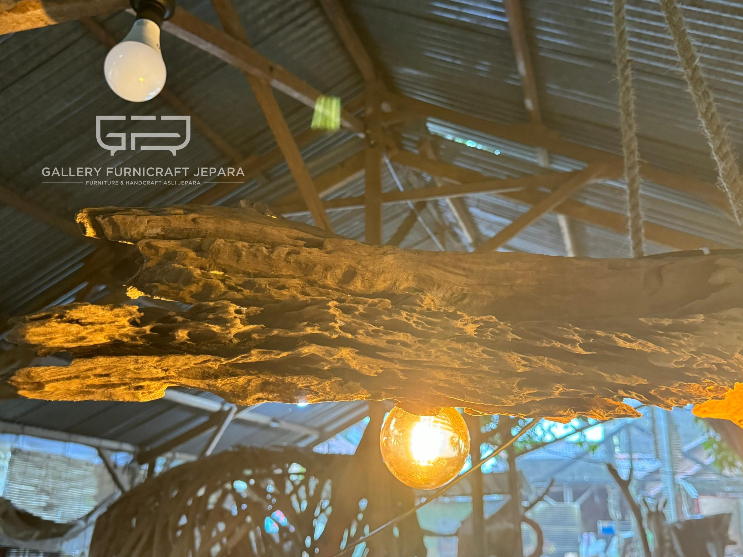 Lampu gantung material jati alami erosi yang sudah sabgat tua dan keras secara alami, cocok digunakan untuk dekorasi hotel/villa/meja makan untuk indoor maupun outdoor, made by Gallery Furnicraft Jepara.