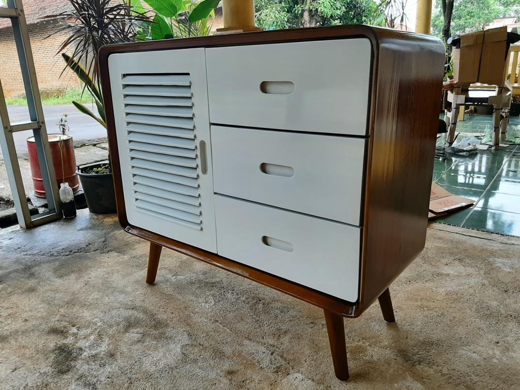 LEMARI / KABINET RETRO 1 PINTU DAN 3 LACI KAYU JATI