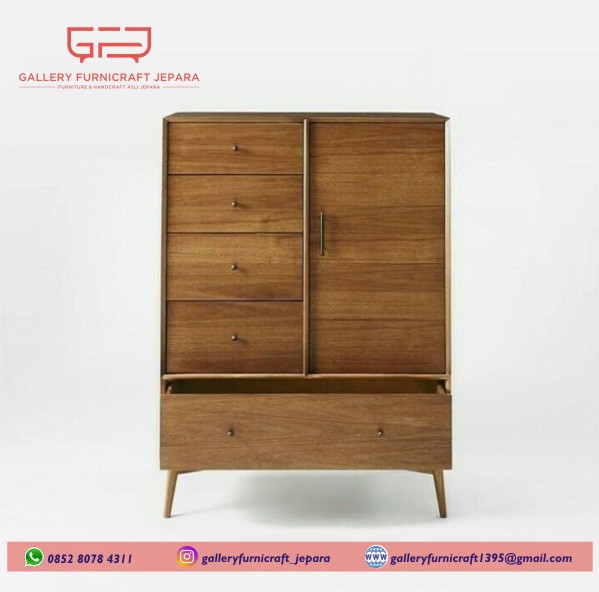 ” Lemari 1 Pintu 5 Laci Scandinavy Kayu Jati ”