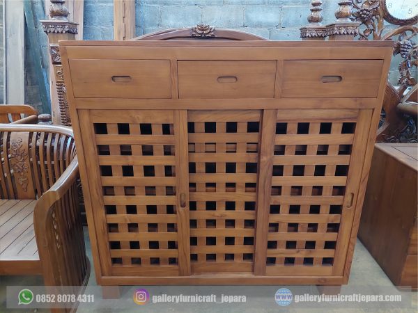 LEMARI SEPATU MINIMALIS JATI SOLID [export quality product]