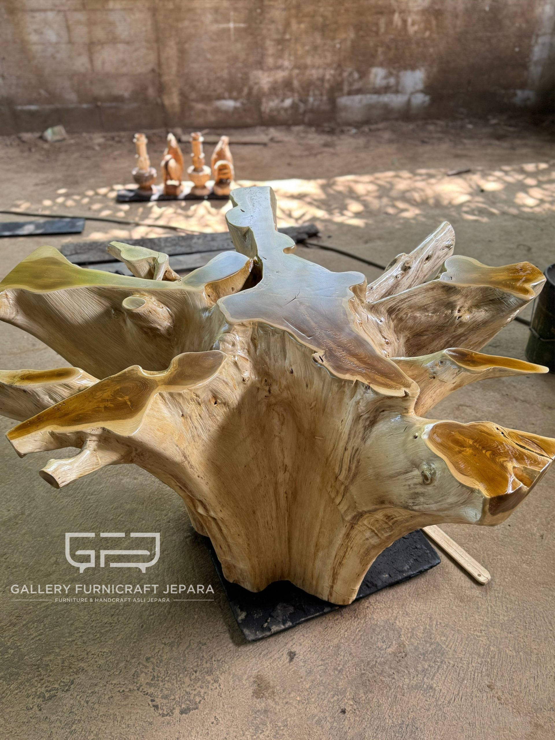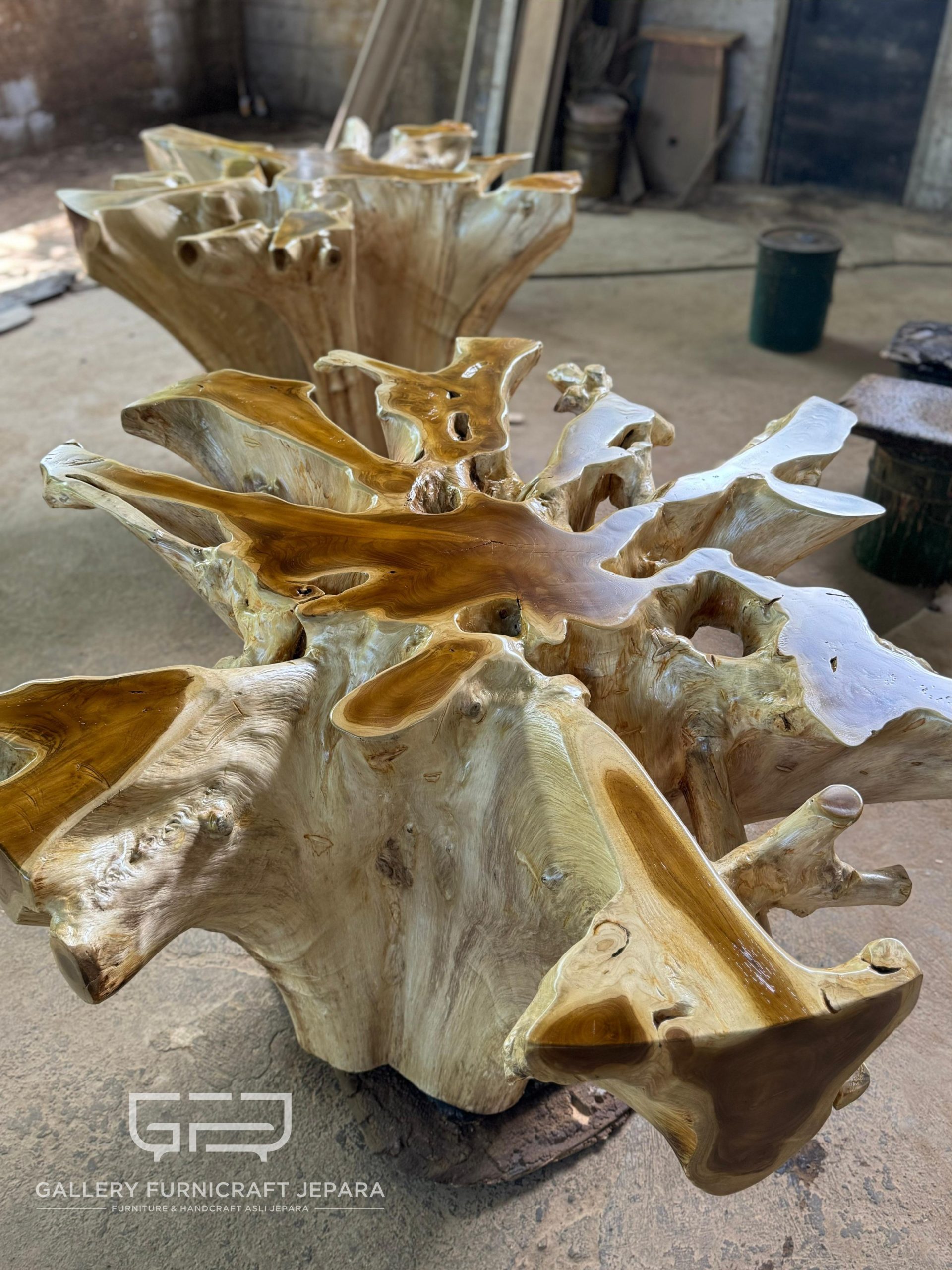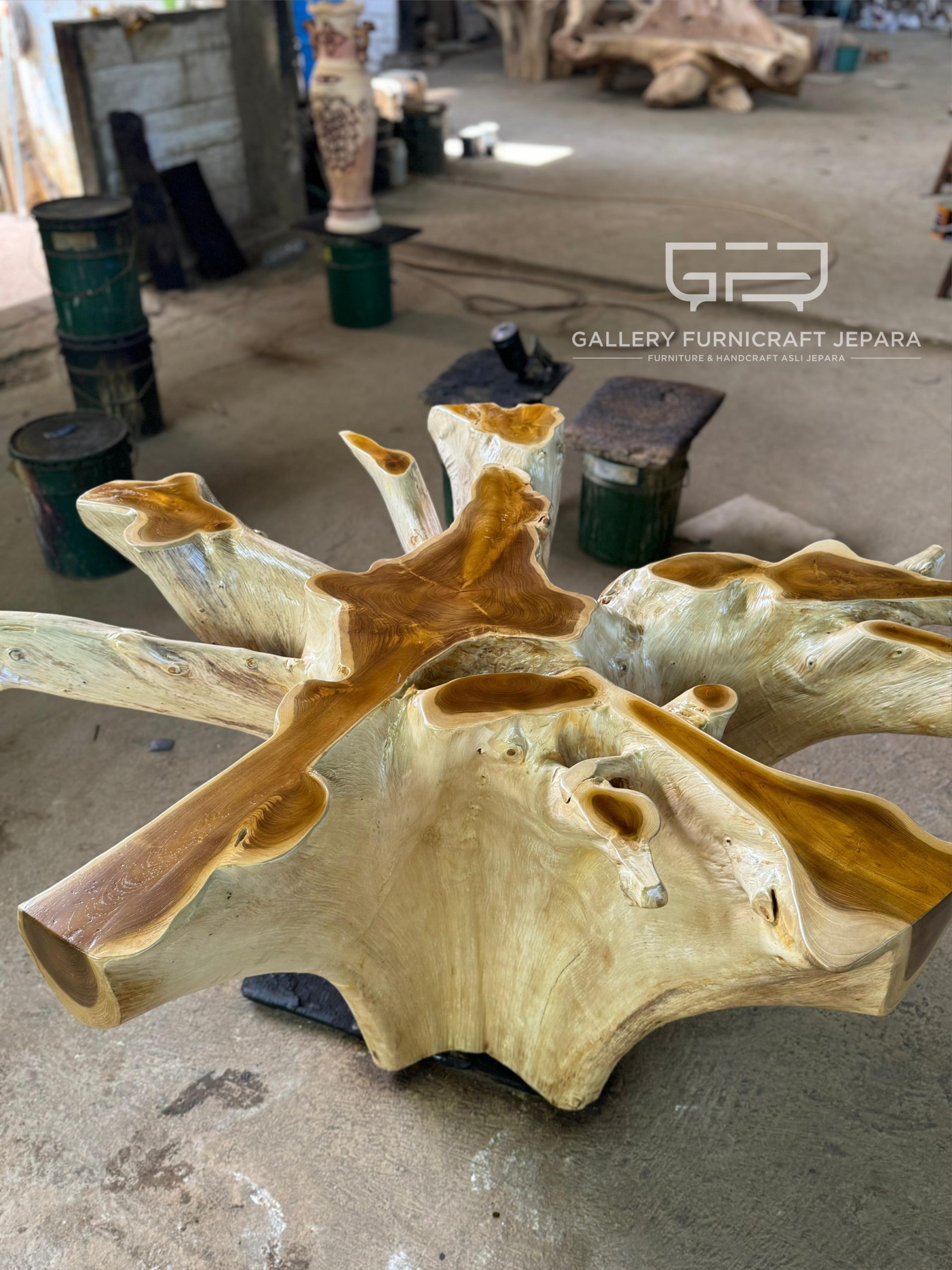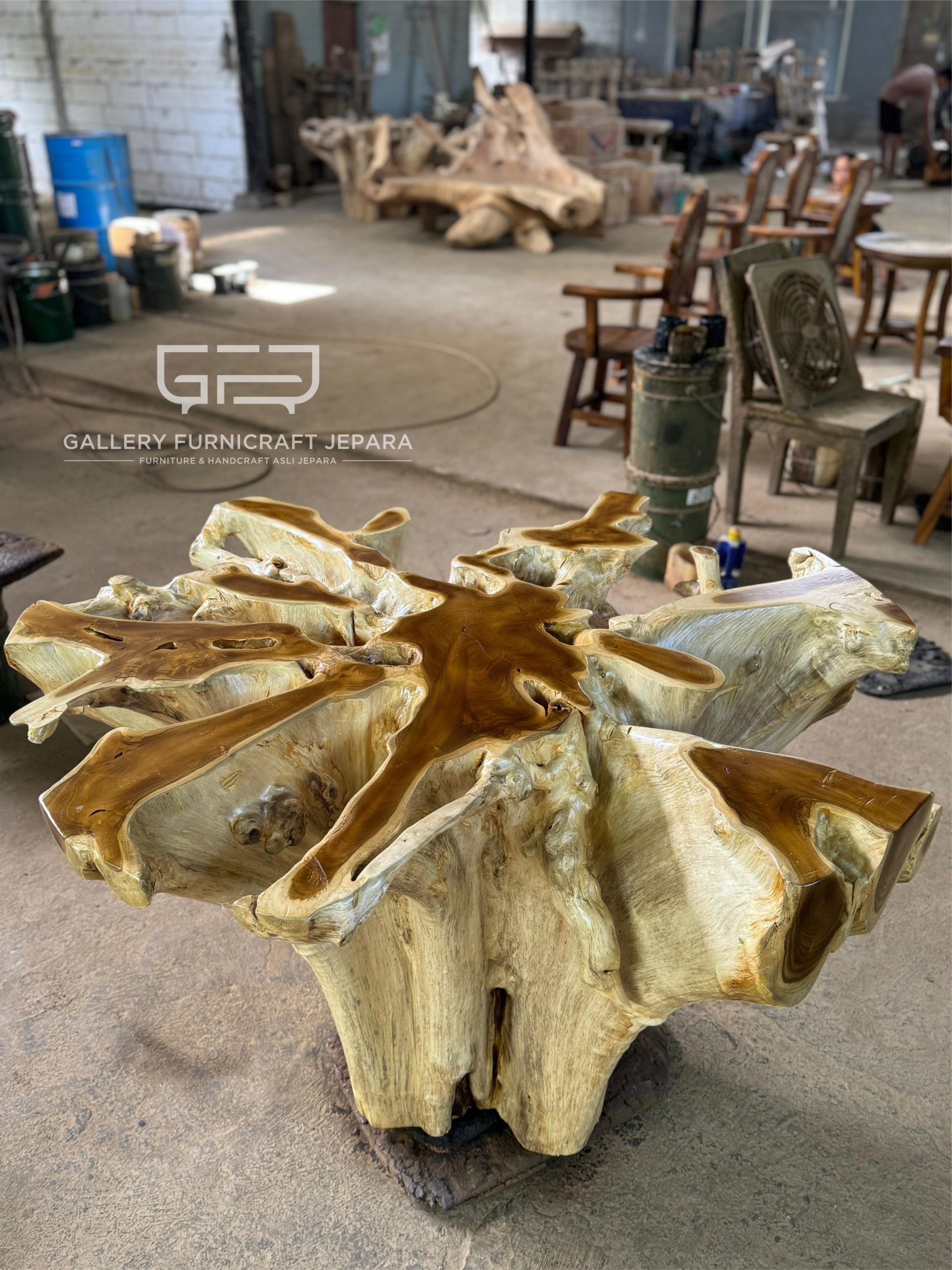 Cocok untuk meja meeteng, meja makan, meja tengah, meja hotel dll, material akar jati utuh tanpa sambungan, kayu tua dan kering, product by Gallery Furnicraft Jepara.