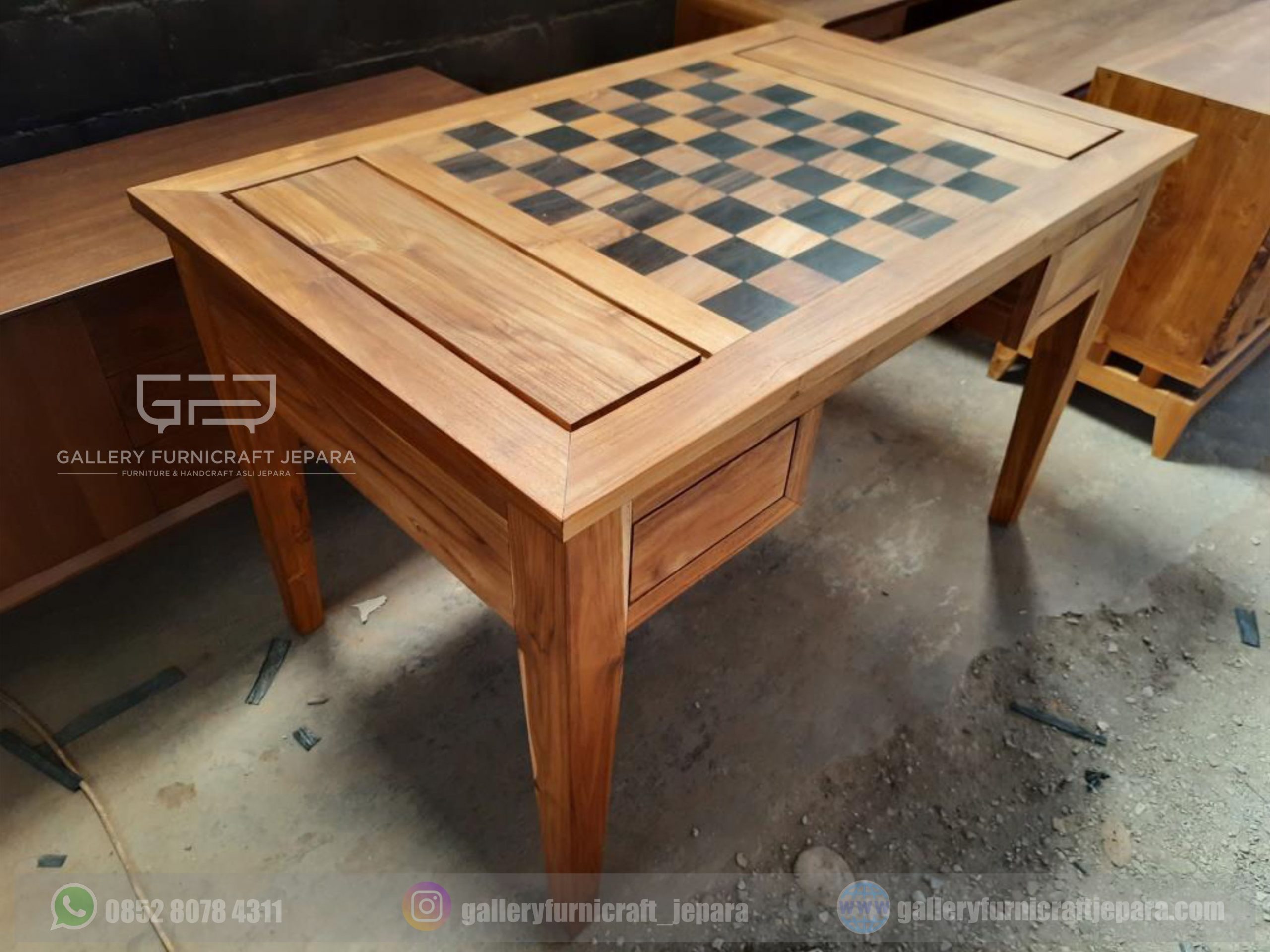 MEJA CATUR DENGAN 4 LACI KAYU JATI KOMBINASI SONOKELING [export quality product]