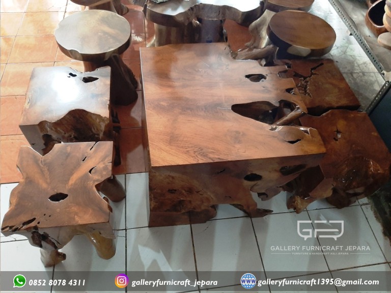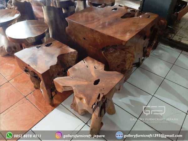 MEJA KUBUS AKAR JATI 4 KURSI, Cocok untuk kursi teras, kursi makan, kursi taman dll