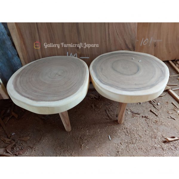 Best seller meja kopi material kayu trembesi/suar dengan potongan kepala kayu bulat, meja ini merupakan 1 kayu utuh tanpa sambungan dengan diameter 70cm