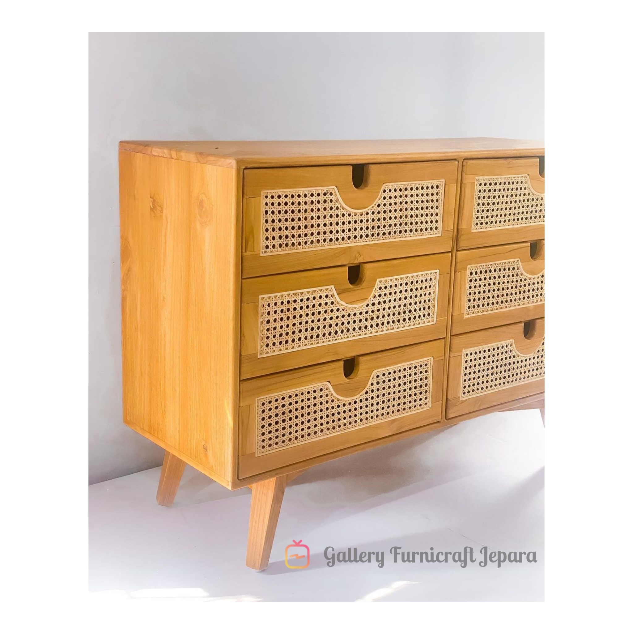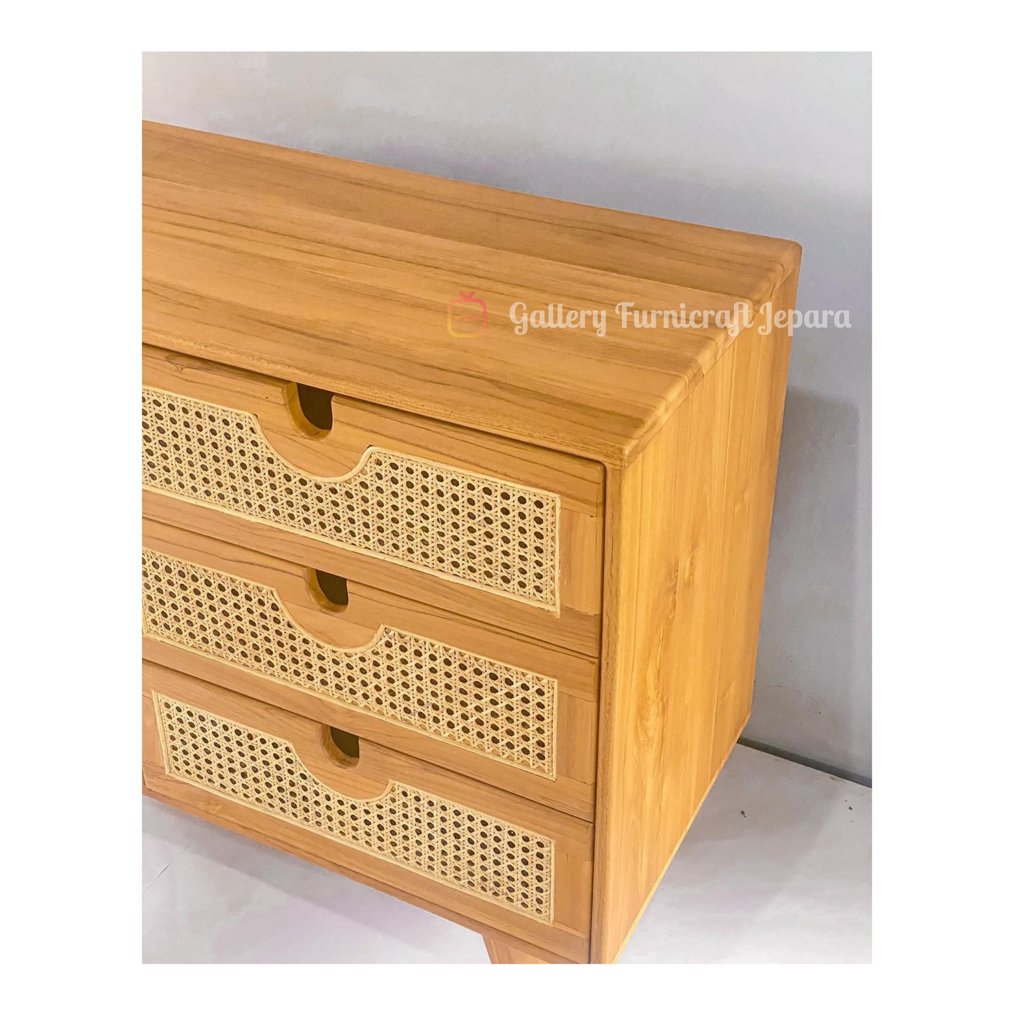 cocok digunakan untuk meja laci, bufet, meja rias, meja tv dengan bahan baku kayu jati yang coraknya bagus dipadukan dengan finishing natural yang super halus dan mewah.