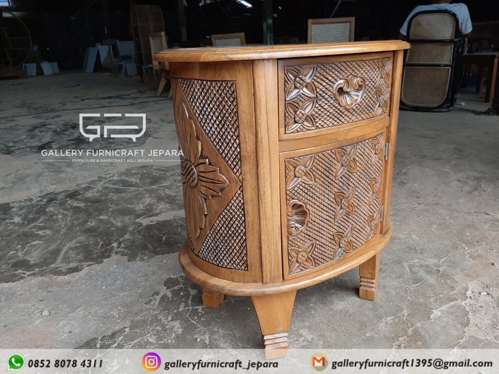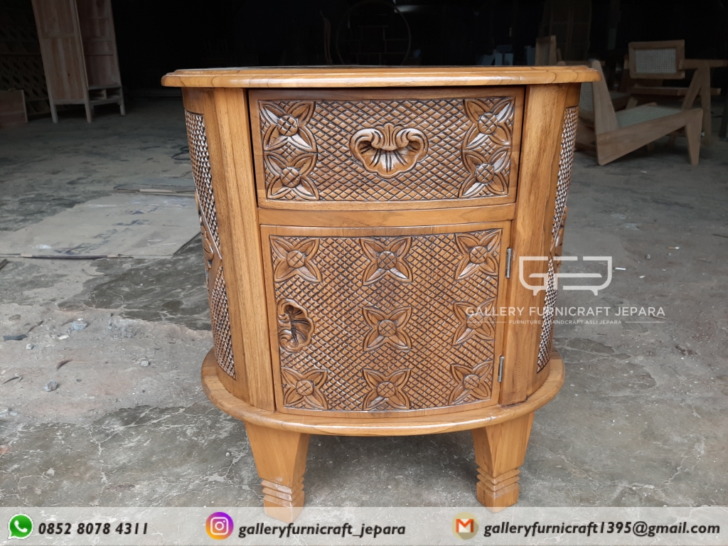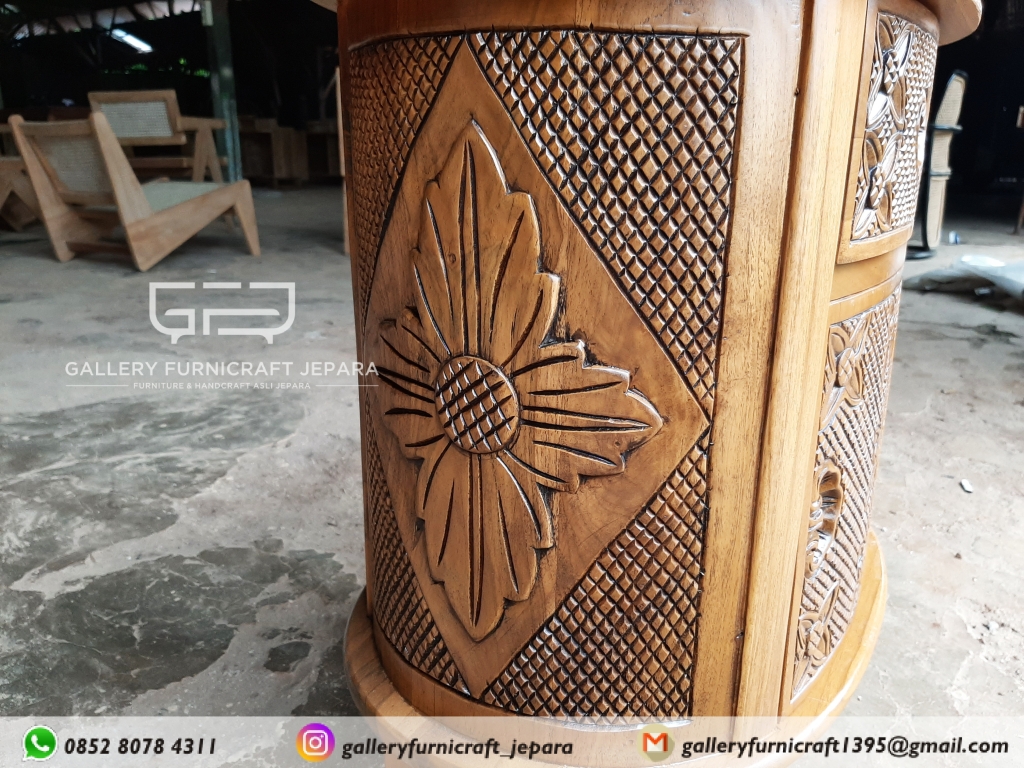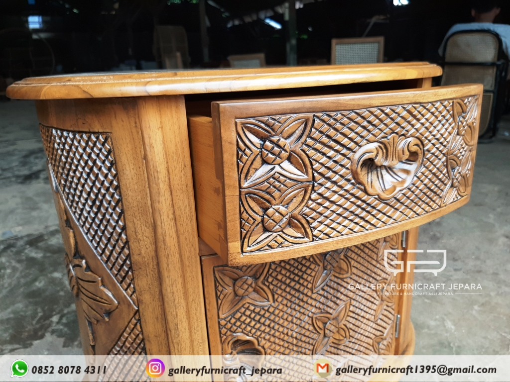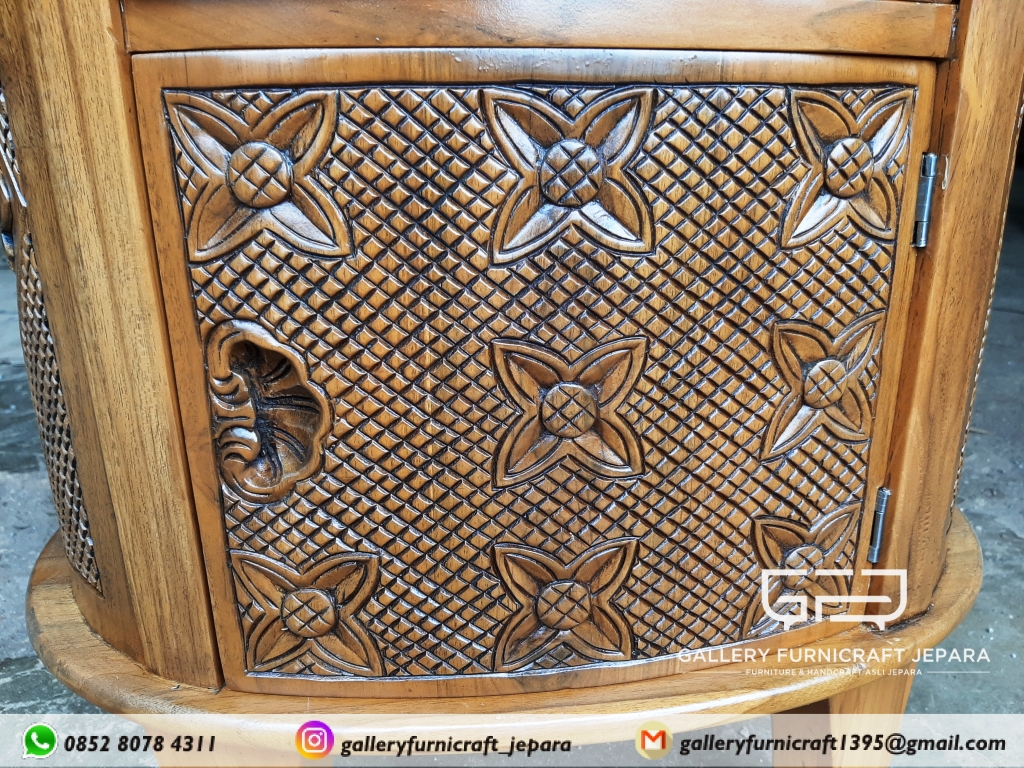 * NAKAS ANTIK KAYU JATI UKIRAN KAWUNG DILENGKAPI 1 PINTU 1 LACI *