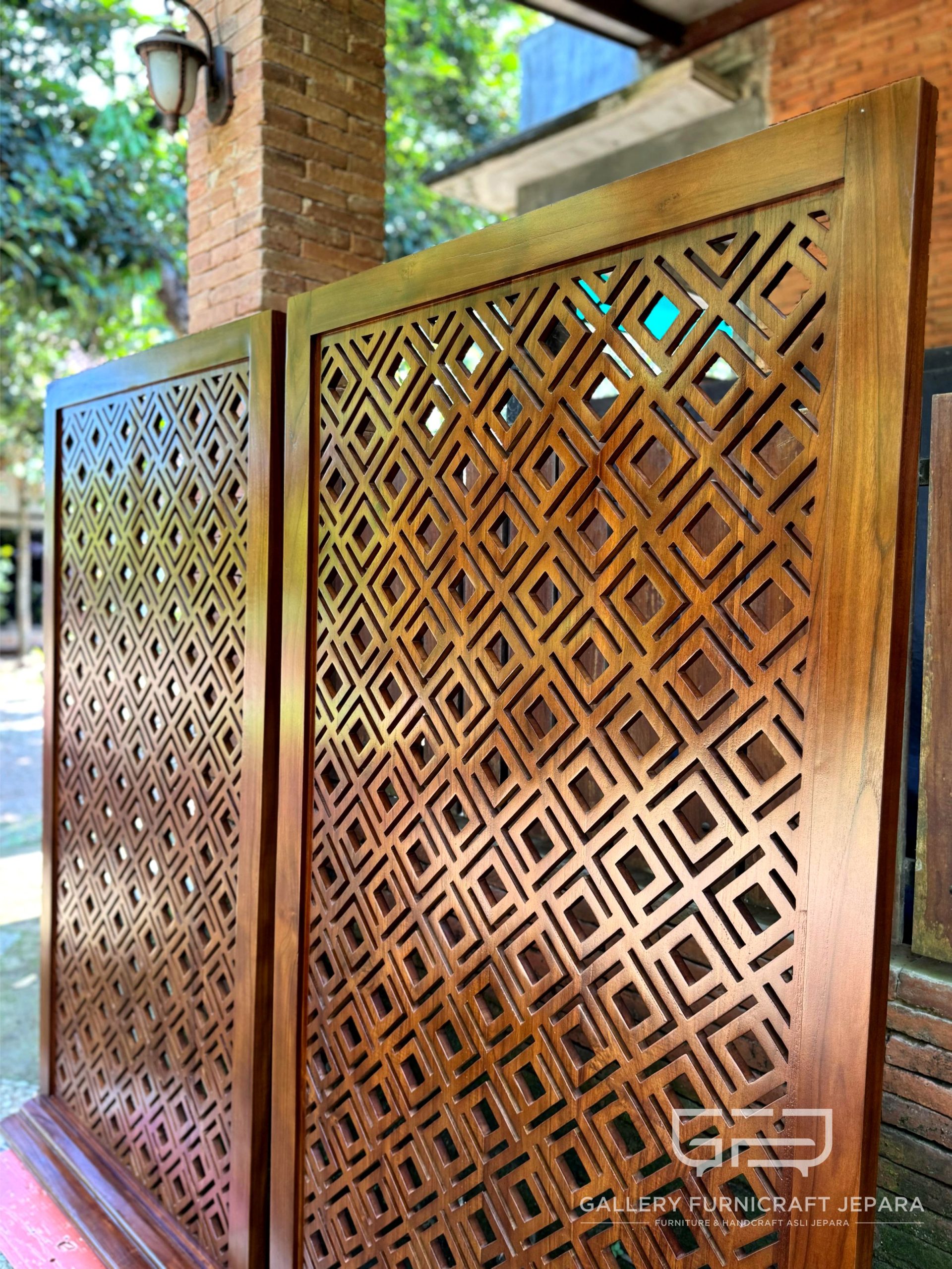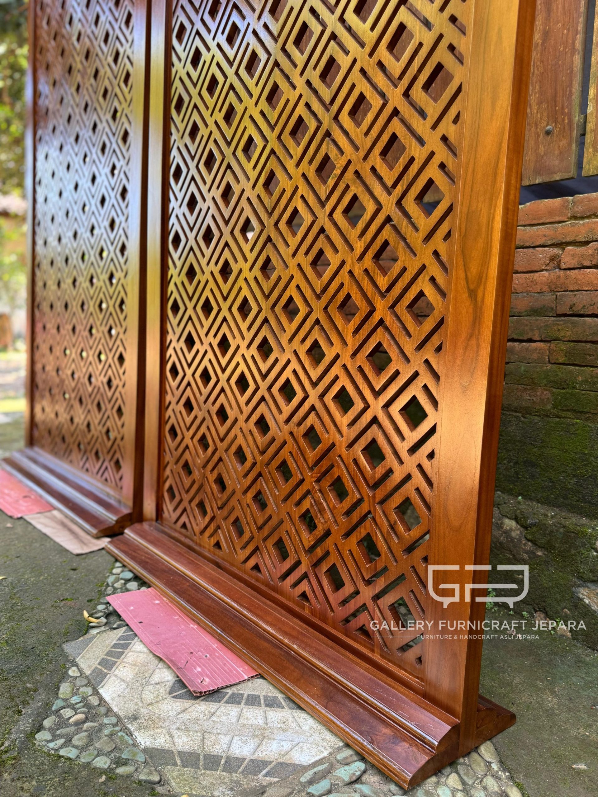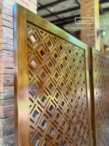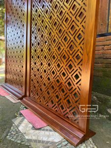 Partisi/pembatas ruang material kayu jati solid, diukir secara manual/handmade, finishing bisa request menggunakan Melamine, product by Gallery Furnicraft Jepara.