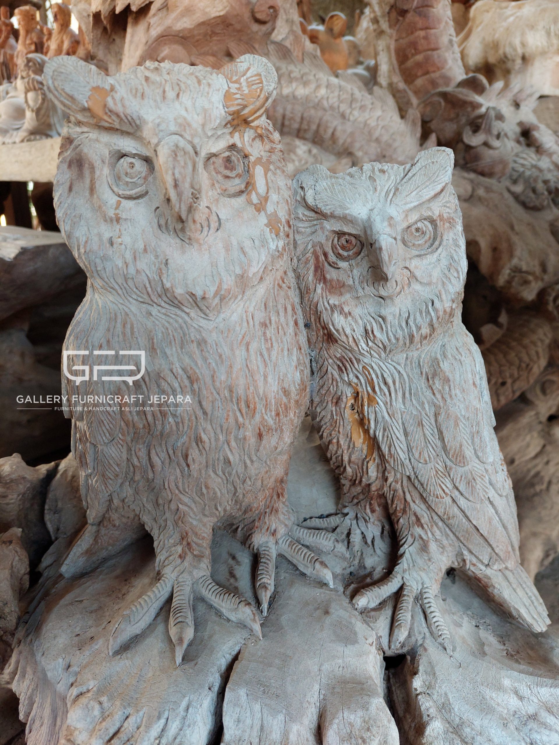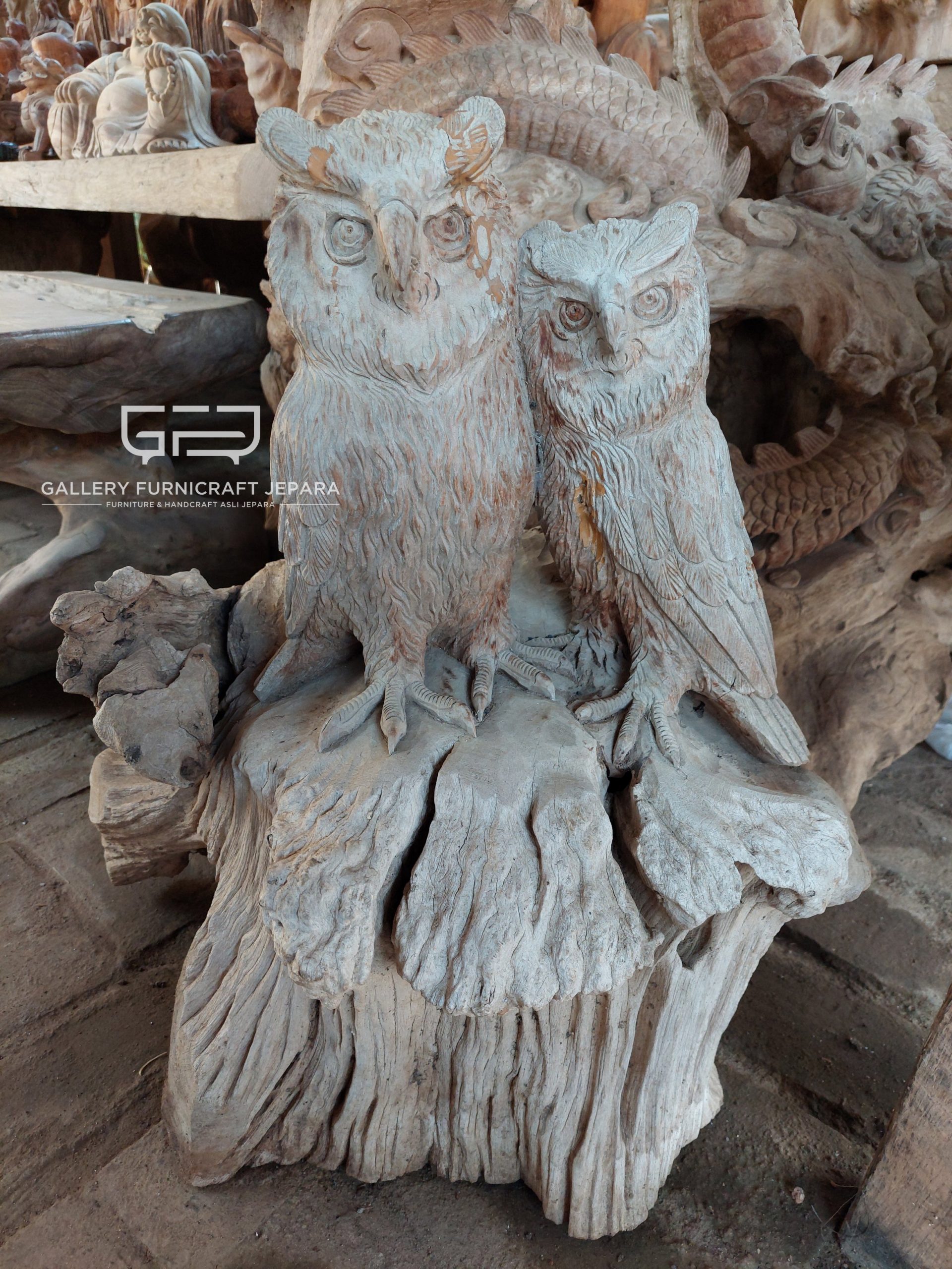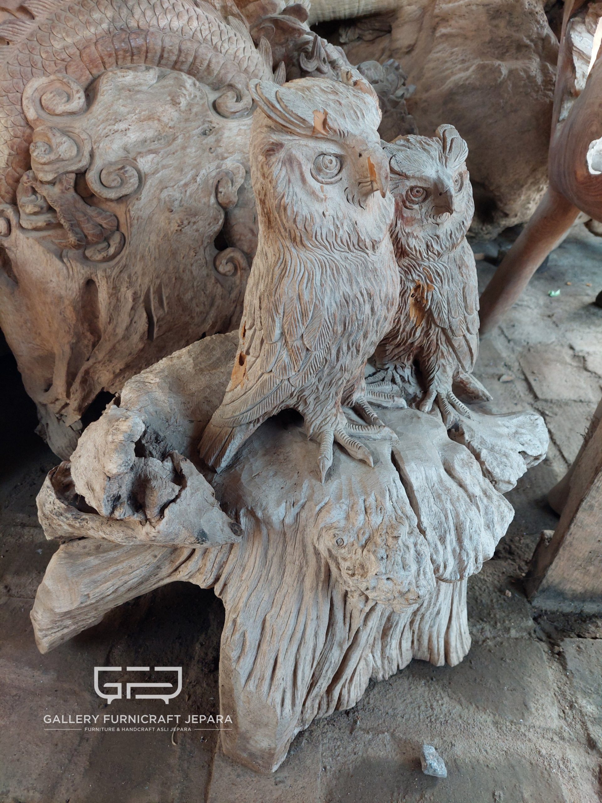 DEKORASI PATUNG 2 BURUNG HANTU AKAR JATI EROSI [export quality product]