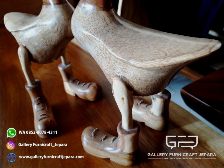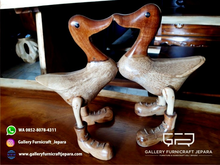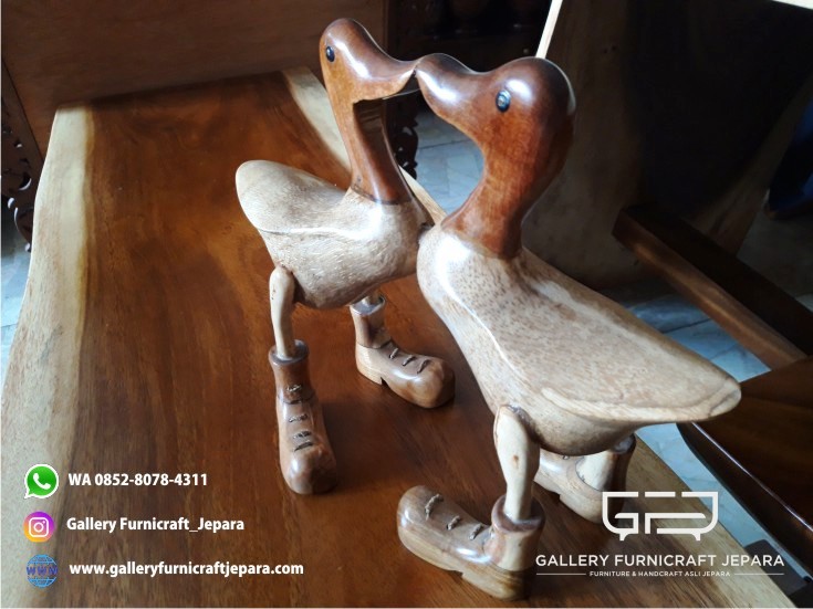 2 Patung bebek kiss dengan bahan baku kayu suar