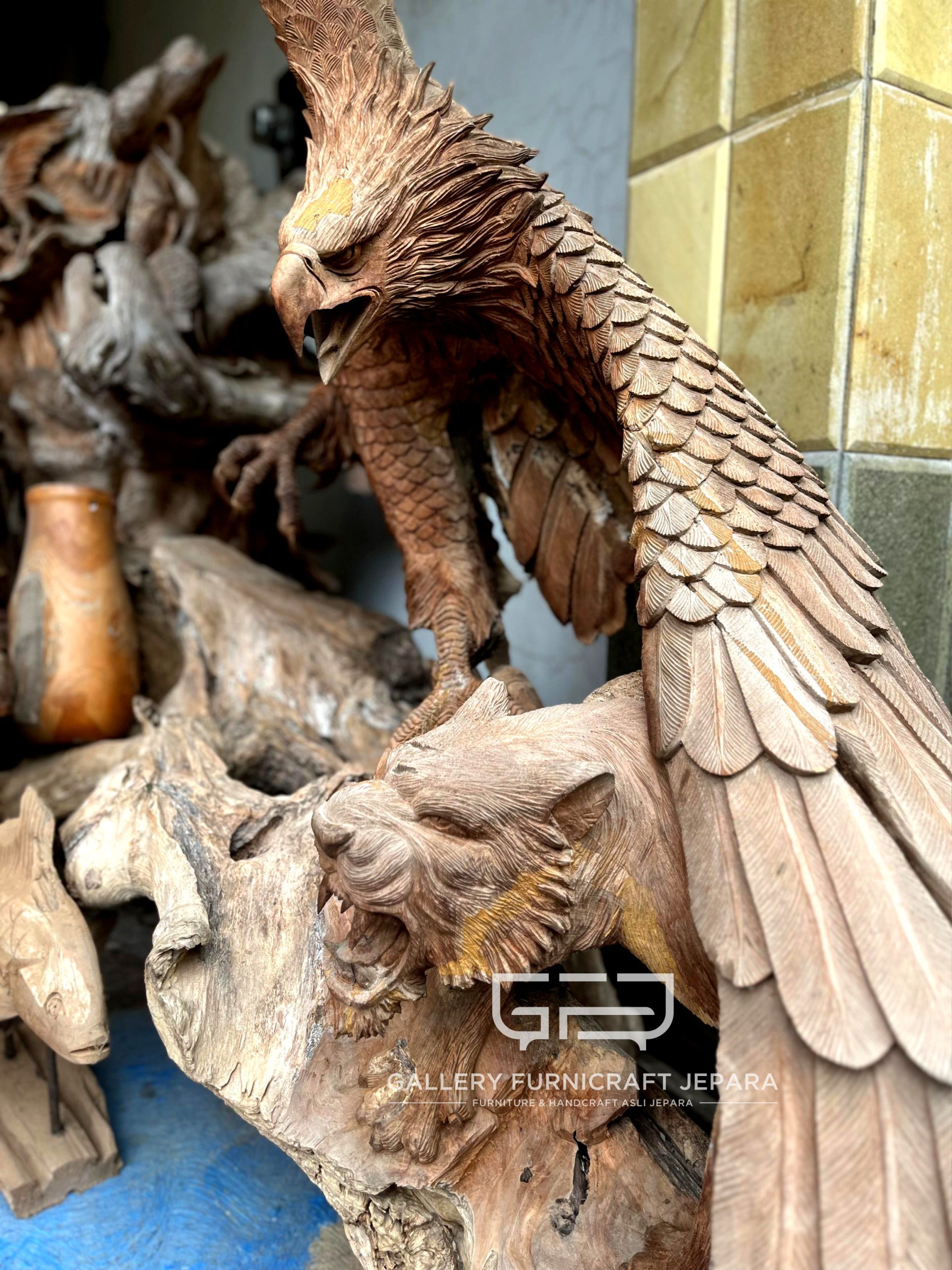 PATUNG ELANG VS HARIMAU AKAR JATI SOLID 250CM || READY STOCK