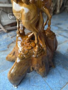 PATUNG KUDA MELINGKARI KOIN POHON JATI SOLID 170 CM