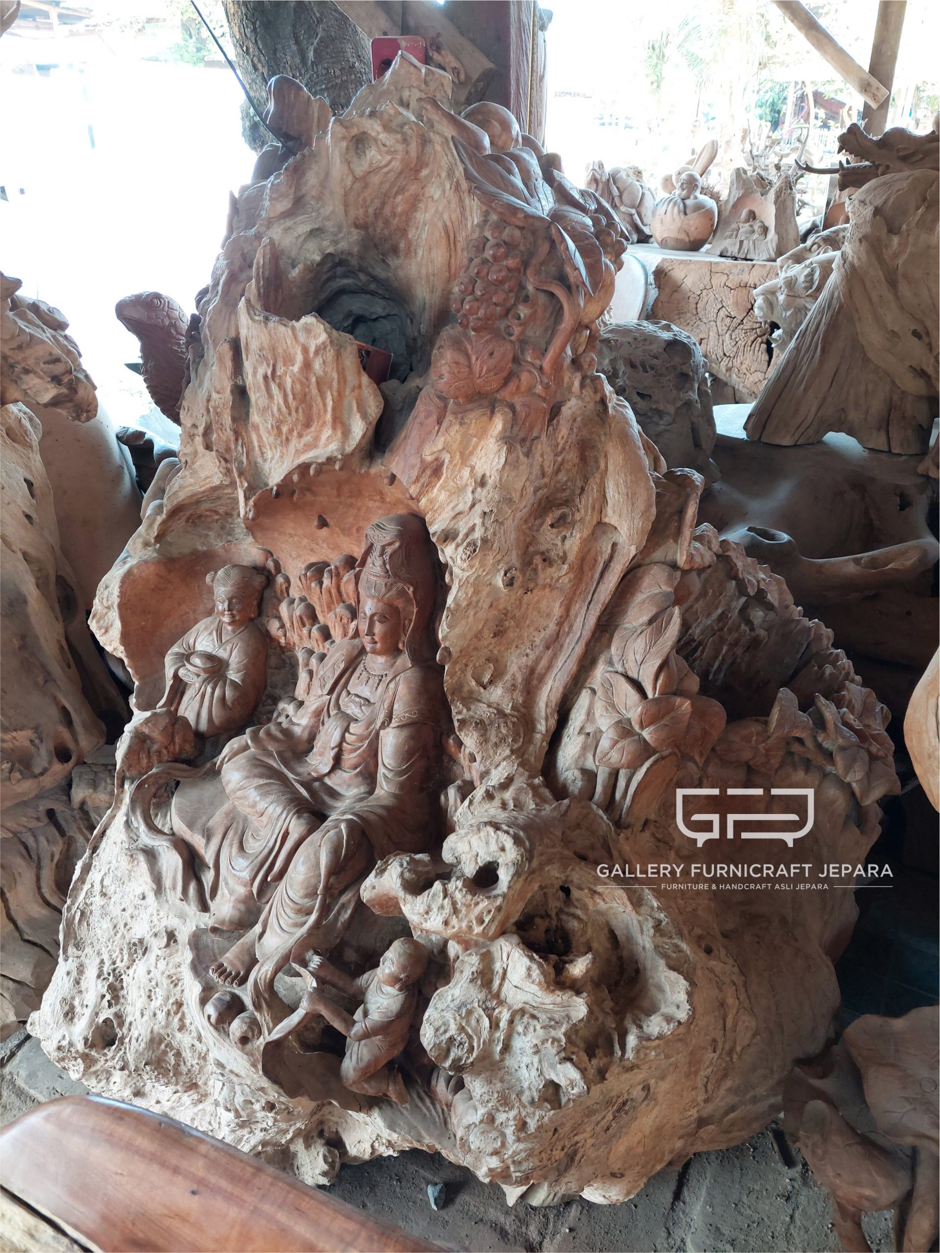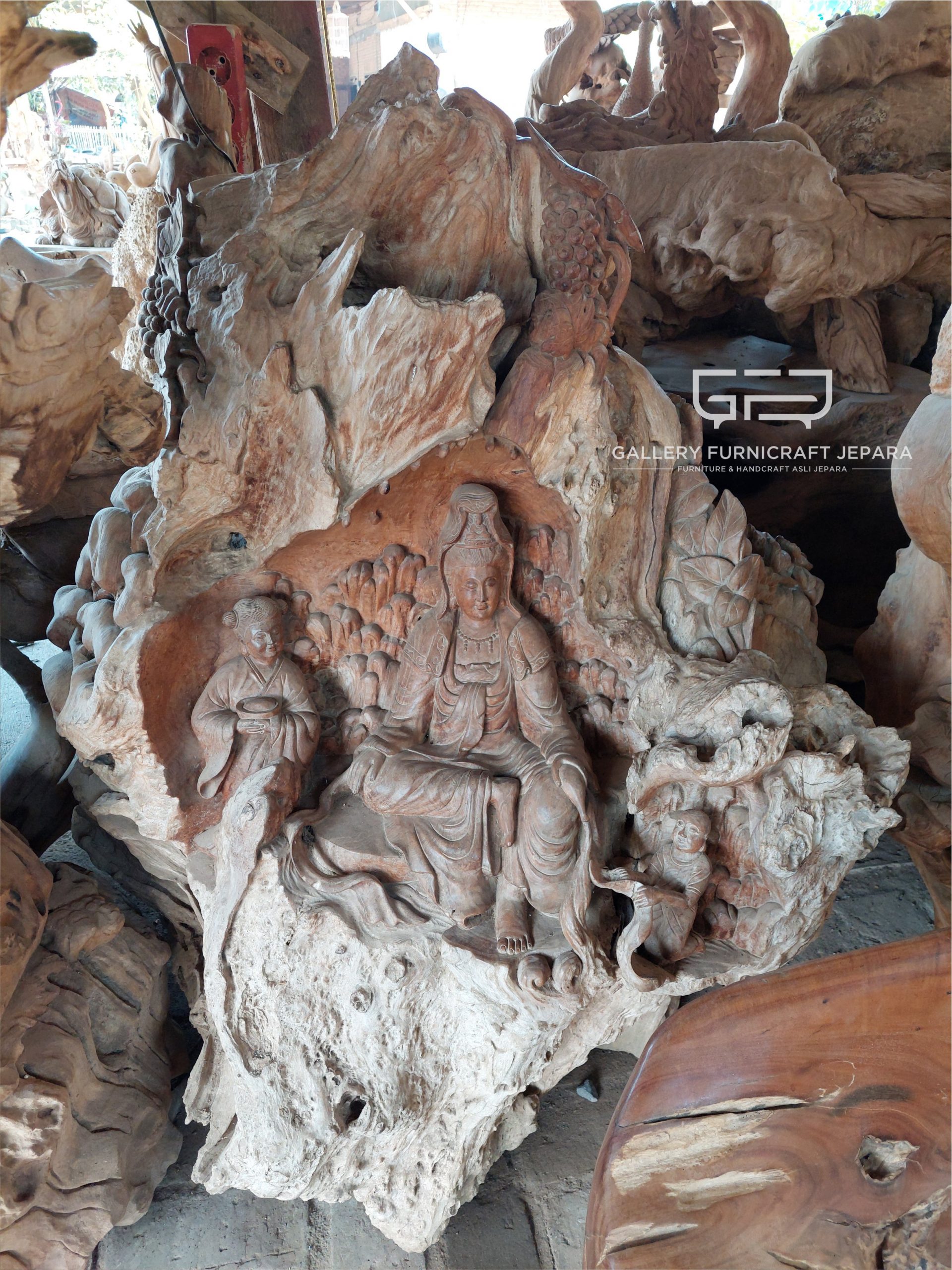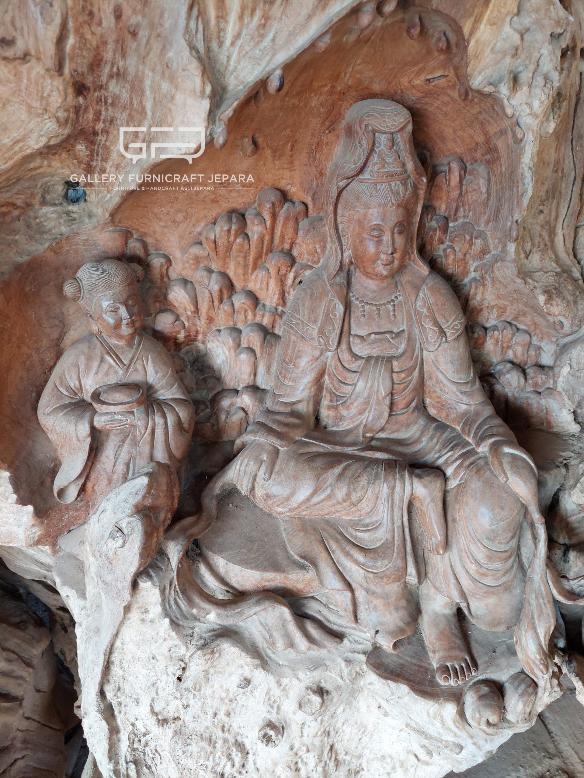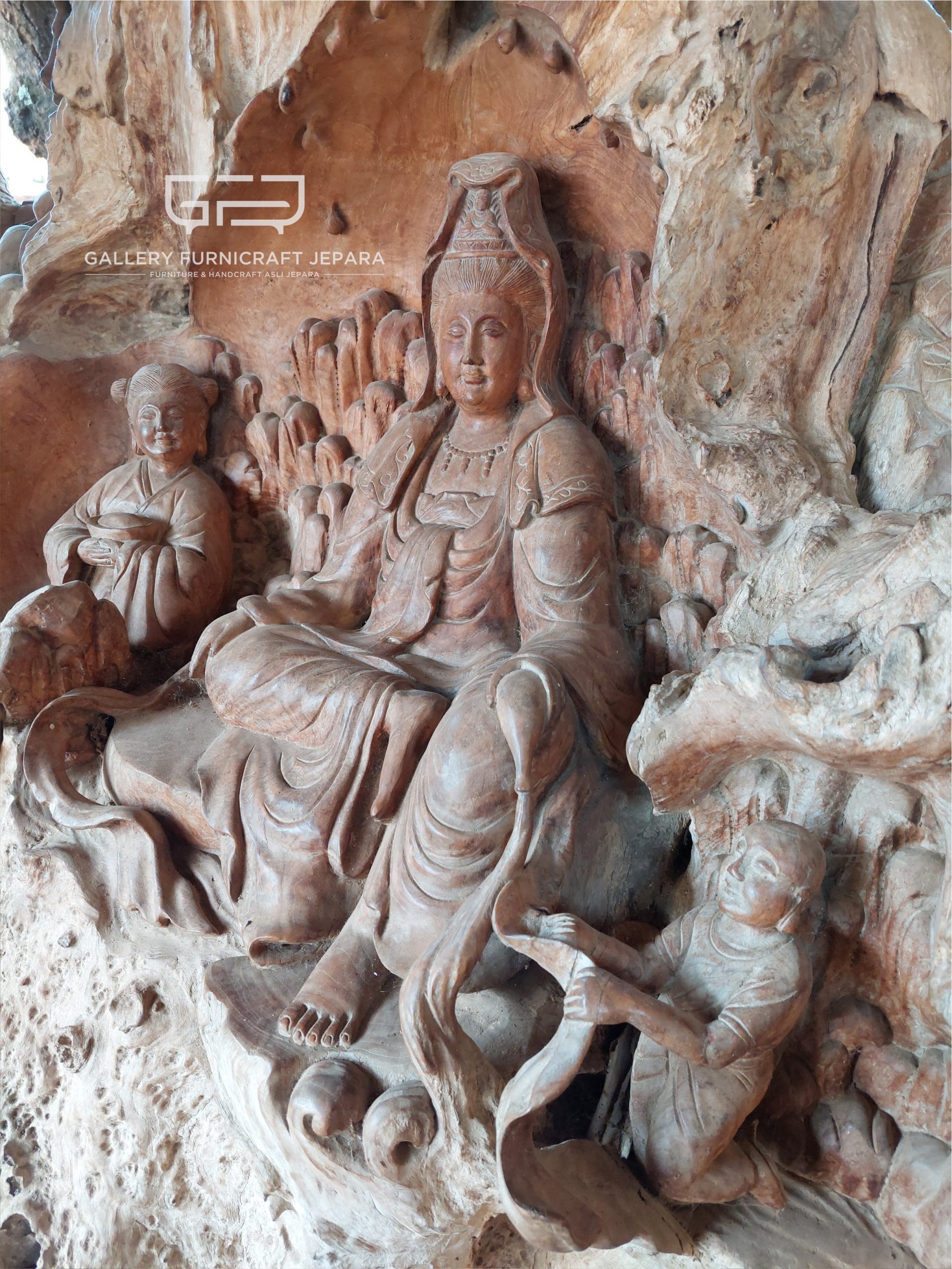 DEKORASI PATUNG DEWI QUAN IN AKAR JATI EROSI [export quality product]