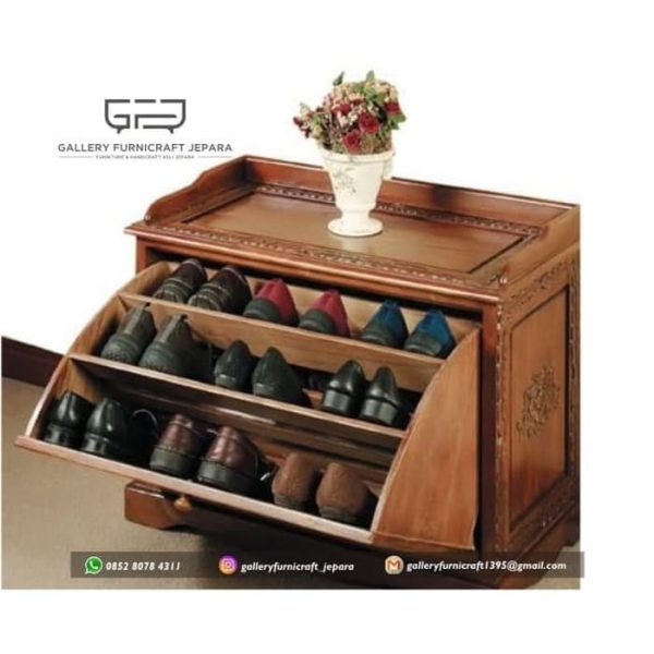 Rak Sepatu ini diproduksi dan difinishing di Jepara. Rak Sepatu ini bisa ditempatkan di Hotel, Kantor, maupun di Ruang Keluarga pribadi