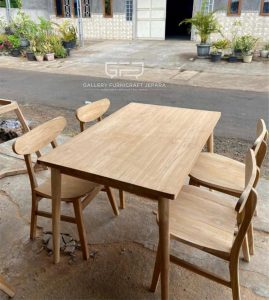 set meja makan terdiri dari 1 meja + 4 kursi, material kayu jati tua, finishing warna natural kayu dengan top coating melamine doff/glossy sesuai request anda, made by Gallery Furnicraft Jepara.