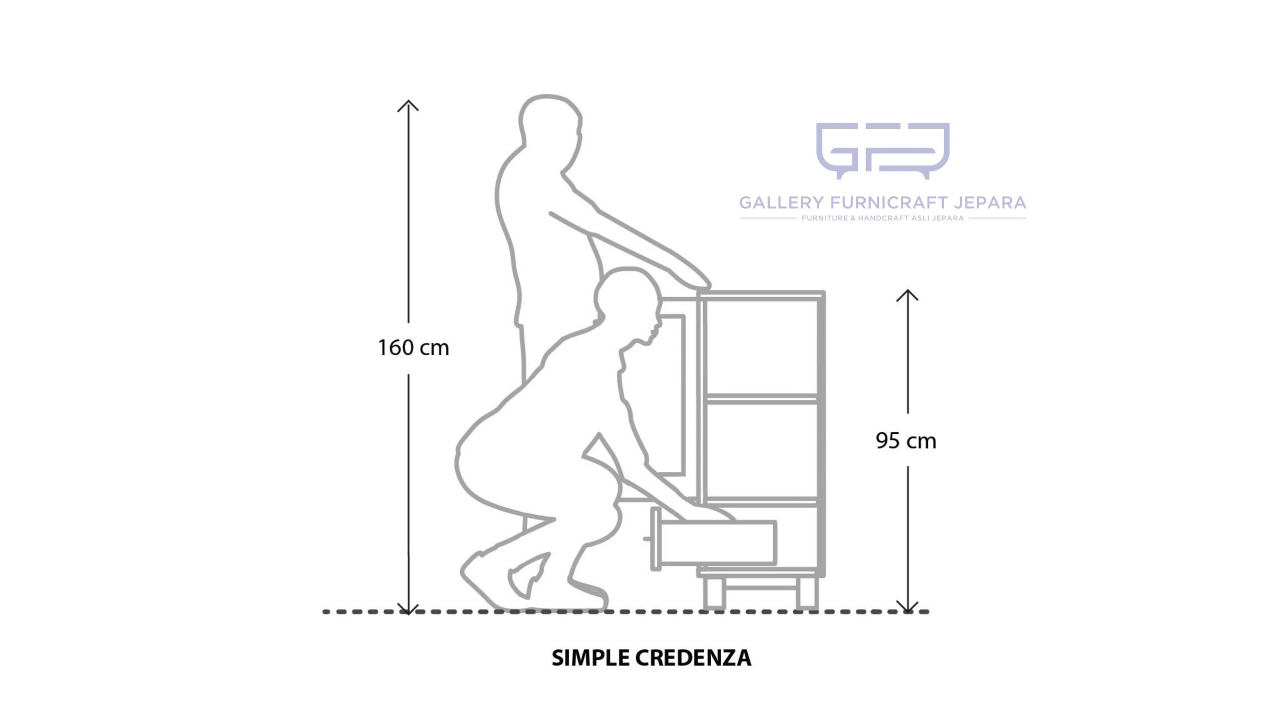 Simple Credenza merupakan lemari kecil dengan 2 pintu kaca dan dilengkapi dengan 2 laci di bagian bawah.