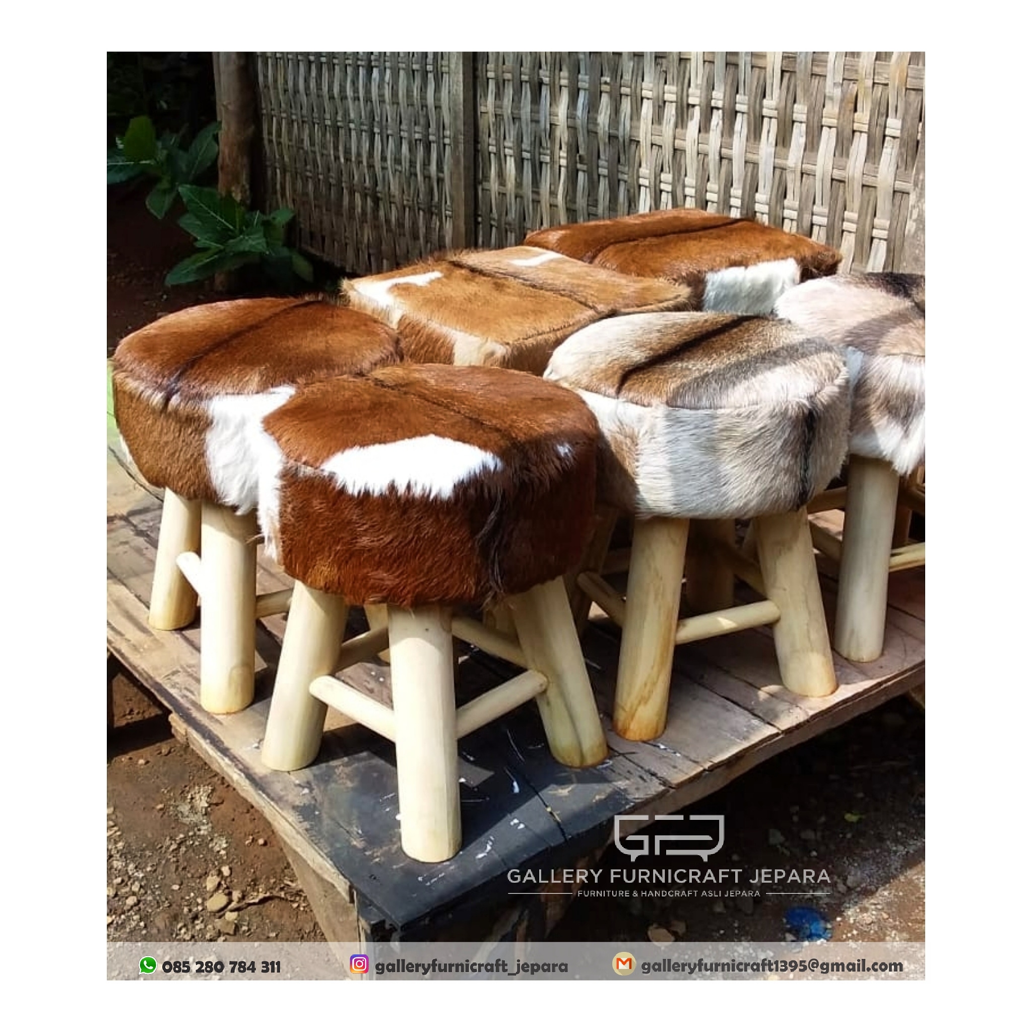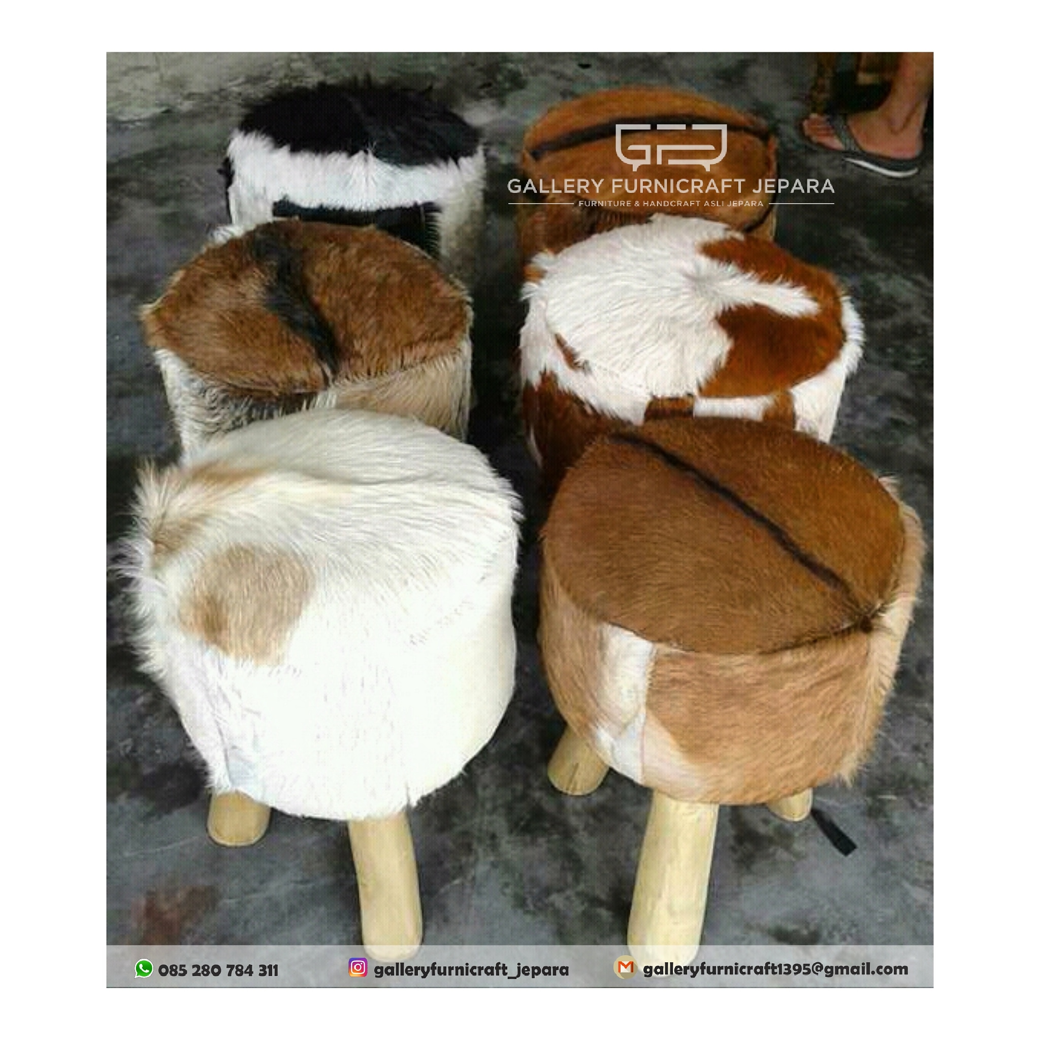 Stool berbagai macam ukuran dan bentuk dengan bahan kulit kambing asli