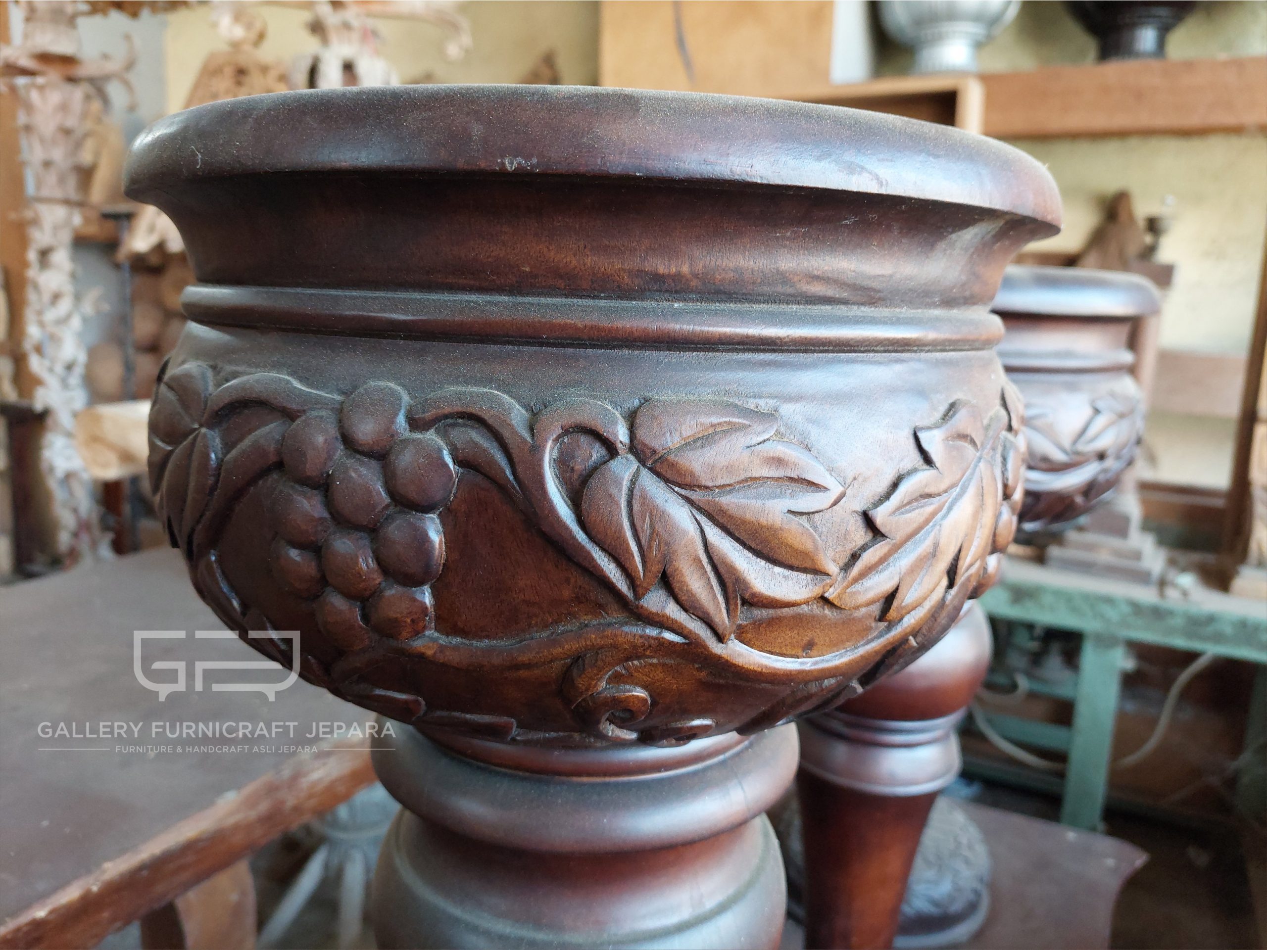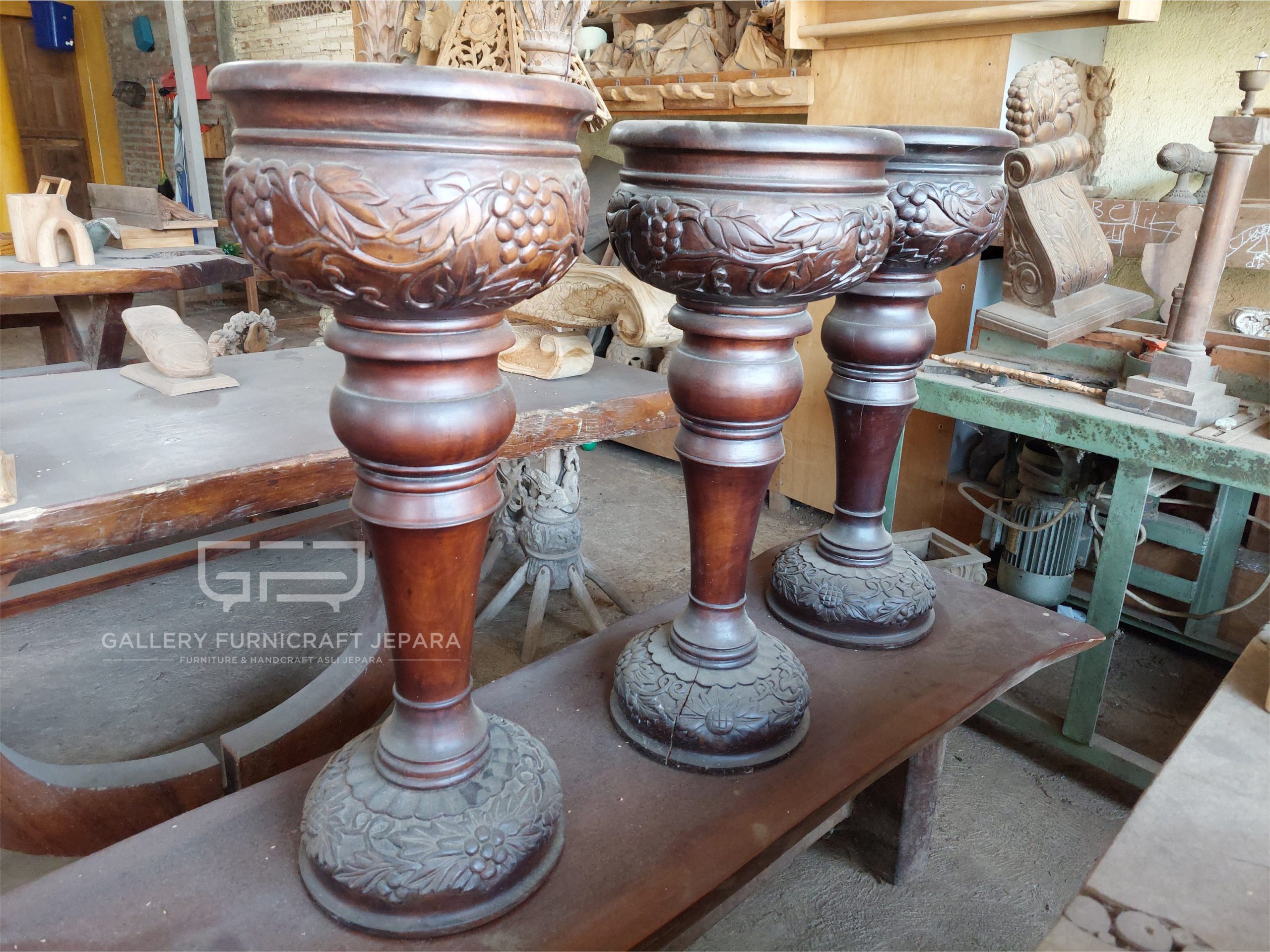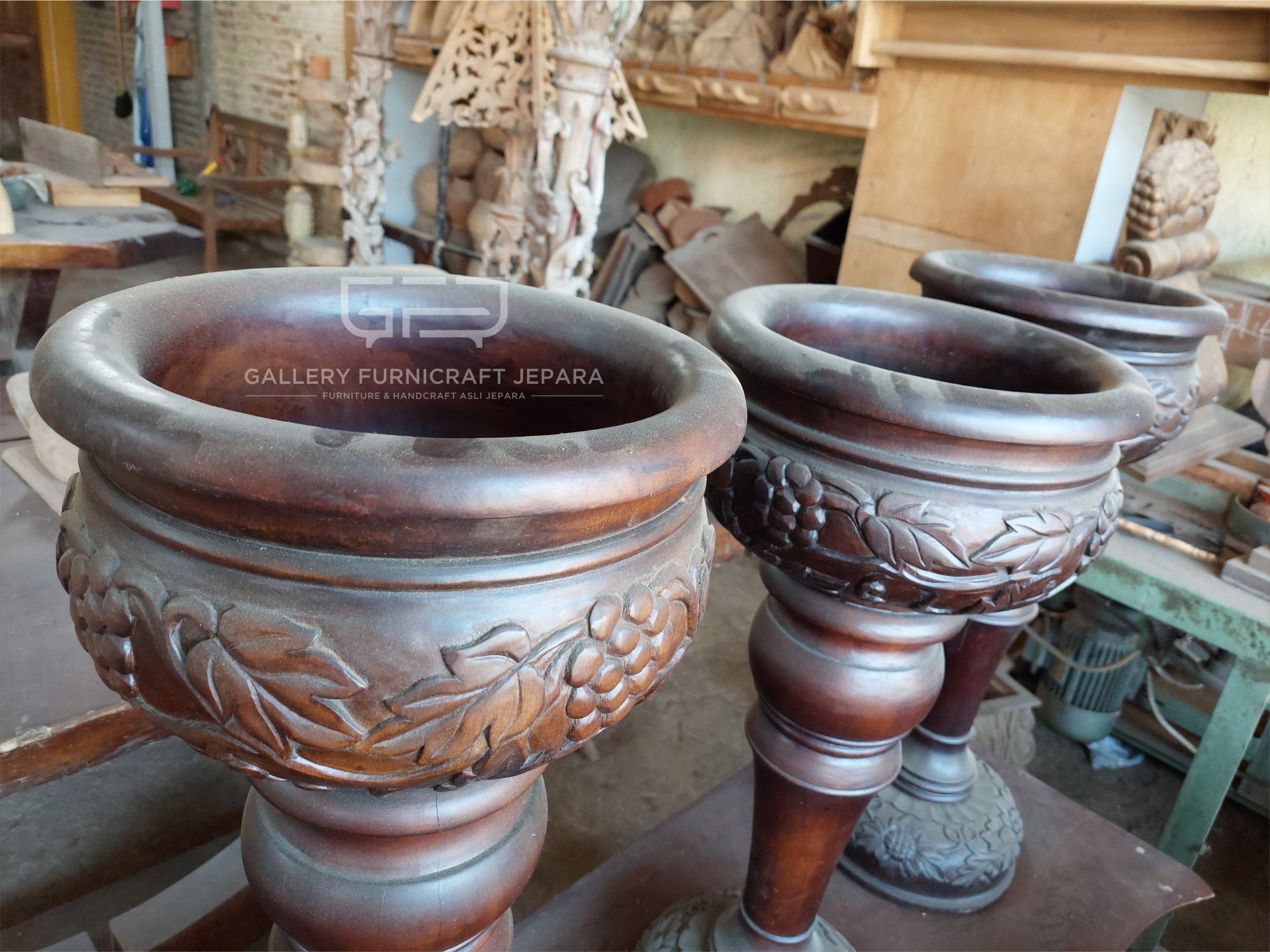 cocok digunakan untuk vas bunga dengan bahan baku kayu mahoni yang coraknya bagus dipadukan dengan finishing salak yang super halus dan mewah.